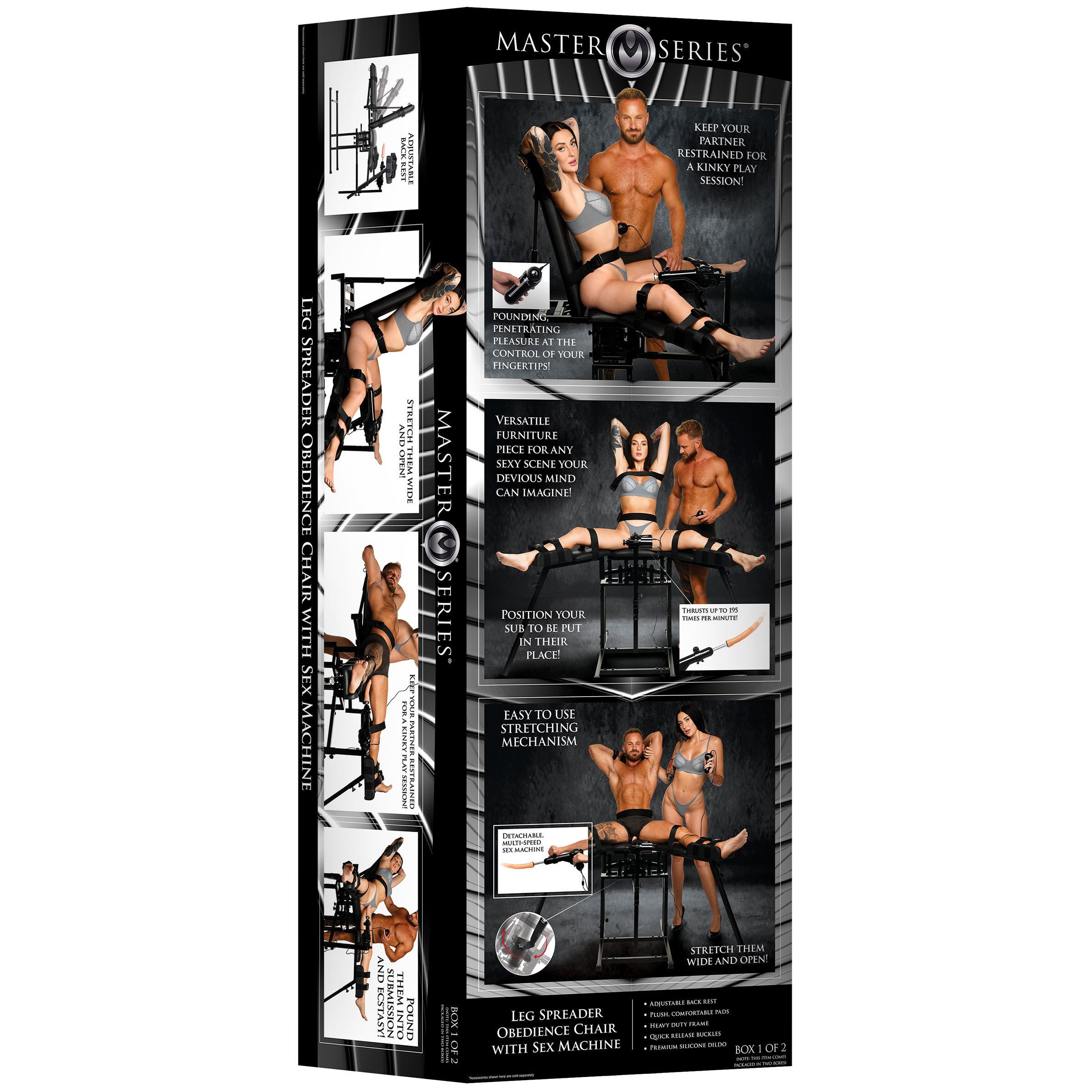 • Seated Upright, Legs Spread: Explore your partner's exposed and open body for hands, toys, or the sex machine to penetrate and play with. Strap them in, and with their hands bound, deny them the sweet release they crave.