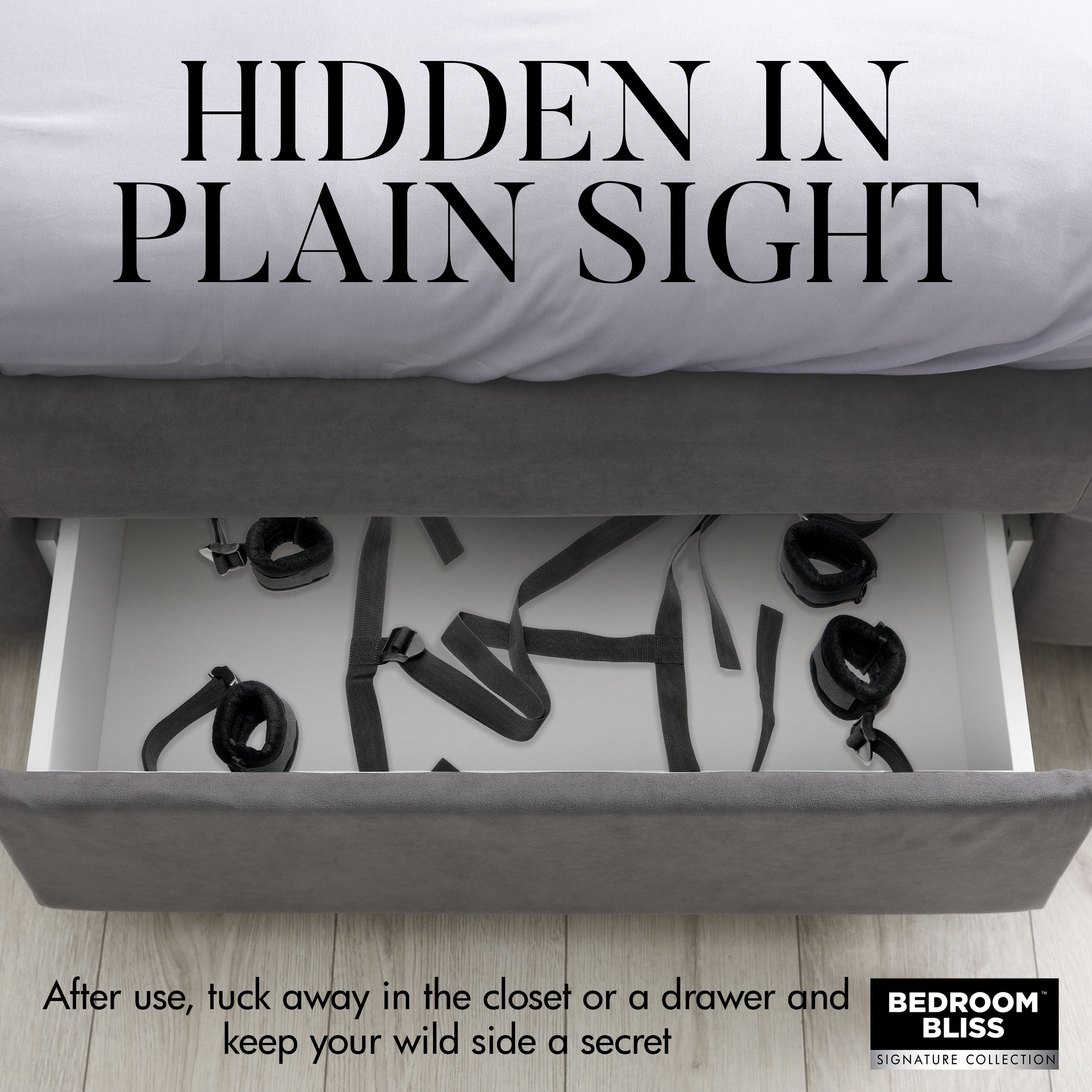 Durable Nylon Straps: The setup consists of durable nylon straps that can handle your partner's movements and playful struggles. They slip underneath the mattress and don't require a specific bed setup.