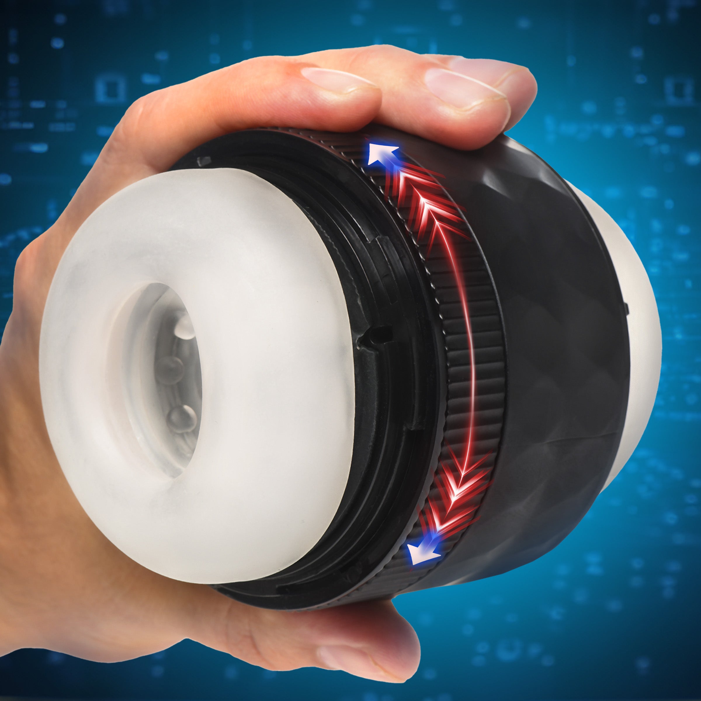 Take off both end caps, squeeze some lube inside and on your shaft, then slide your rod inside. Use the ring to adjust and tighten around your shaft. The squeeze adds pressure and feels so good as you stroke! Put on your favorite sexy films and enjoy solo or put on a show for your partner!