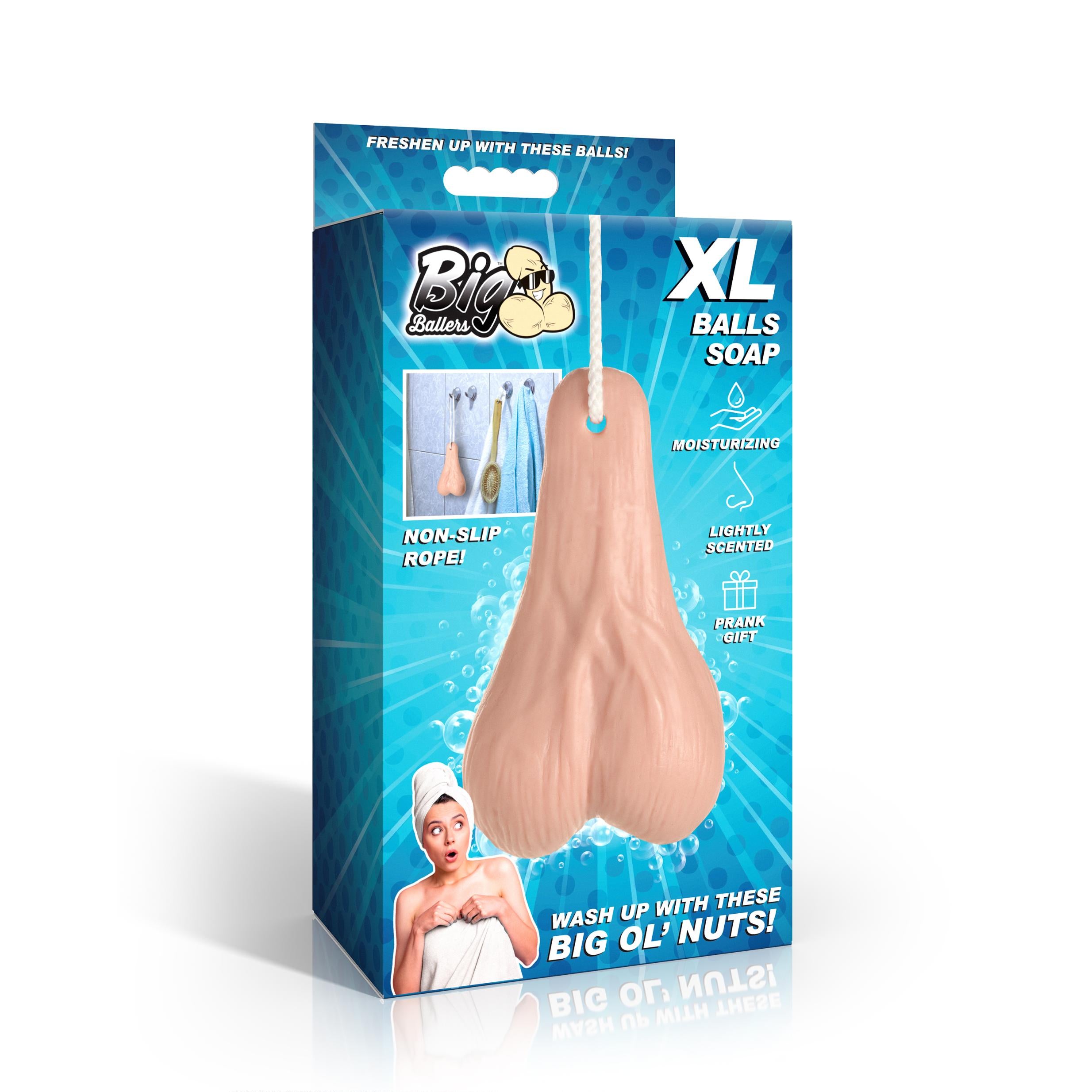 Introducing Balls Soap – the ultimate gag gift for those who love a good laugh! This soap is hilariously shaped like saggy balls, making it an ideal choice for pranks or White Elephant gift exchanges. Lightly scented, it offers a gentle and refreshing fragrance that lingers pleasantly. Don't worry about dry skin; this soap keeps your skin hydrated and moisturized. Its practical design includes a nylon rope for easy hanging and storage.
