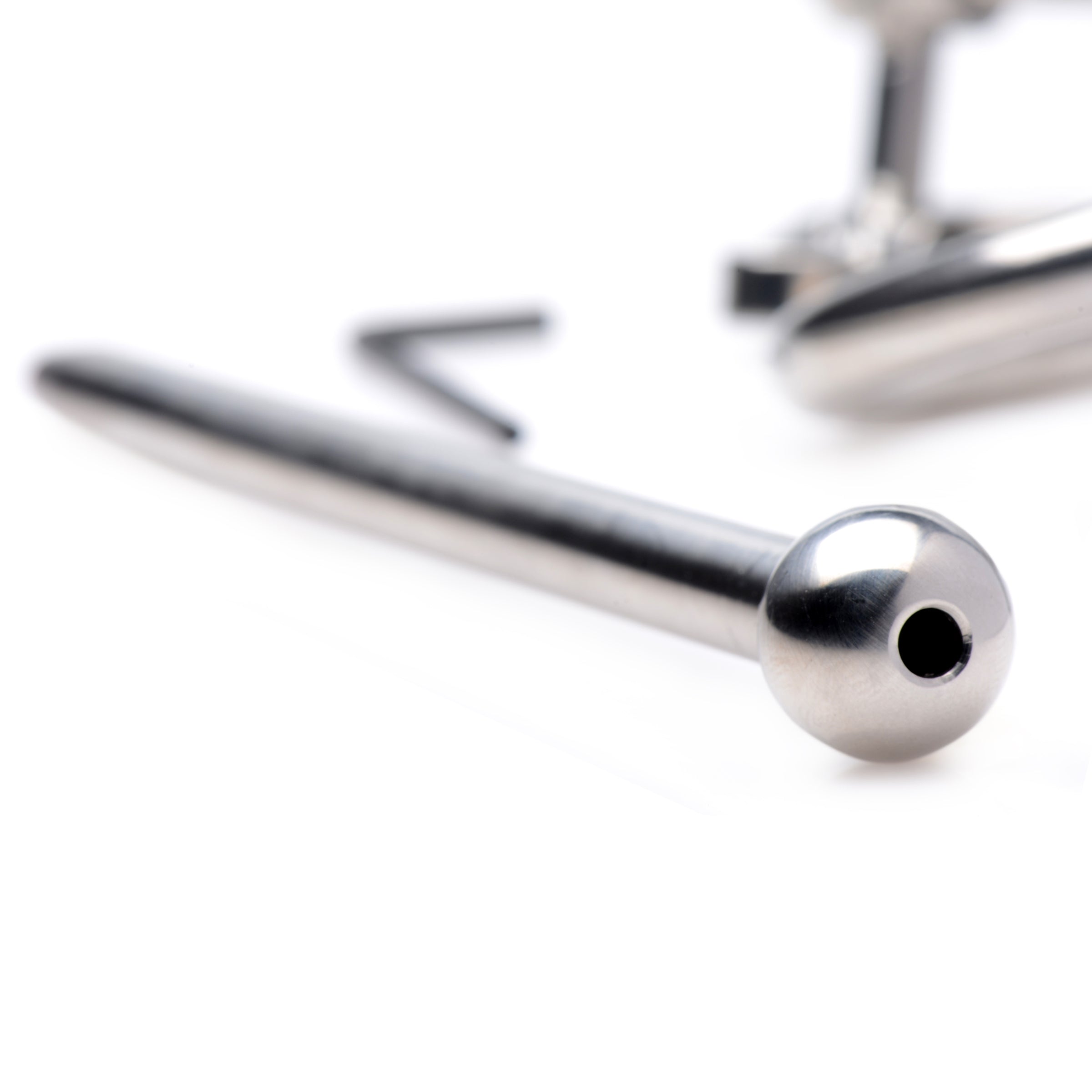 This adjustable sounding cage will hold your cock upright as the hollow urethral insert slides deep inside. The floating sound is capped with a ball, and features a hollow core for liquid to pass through. Each ring is hinged for a better fit, and an Allen wrench is included so that you can clamp the insert in place once you have reached your desired depth.